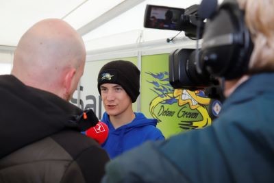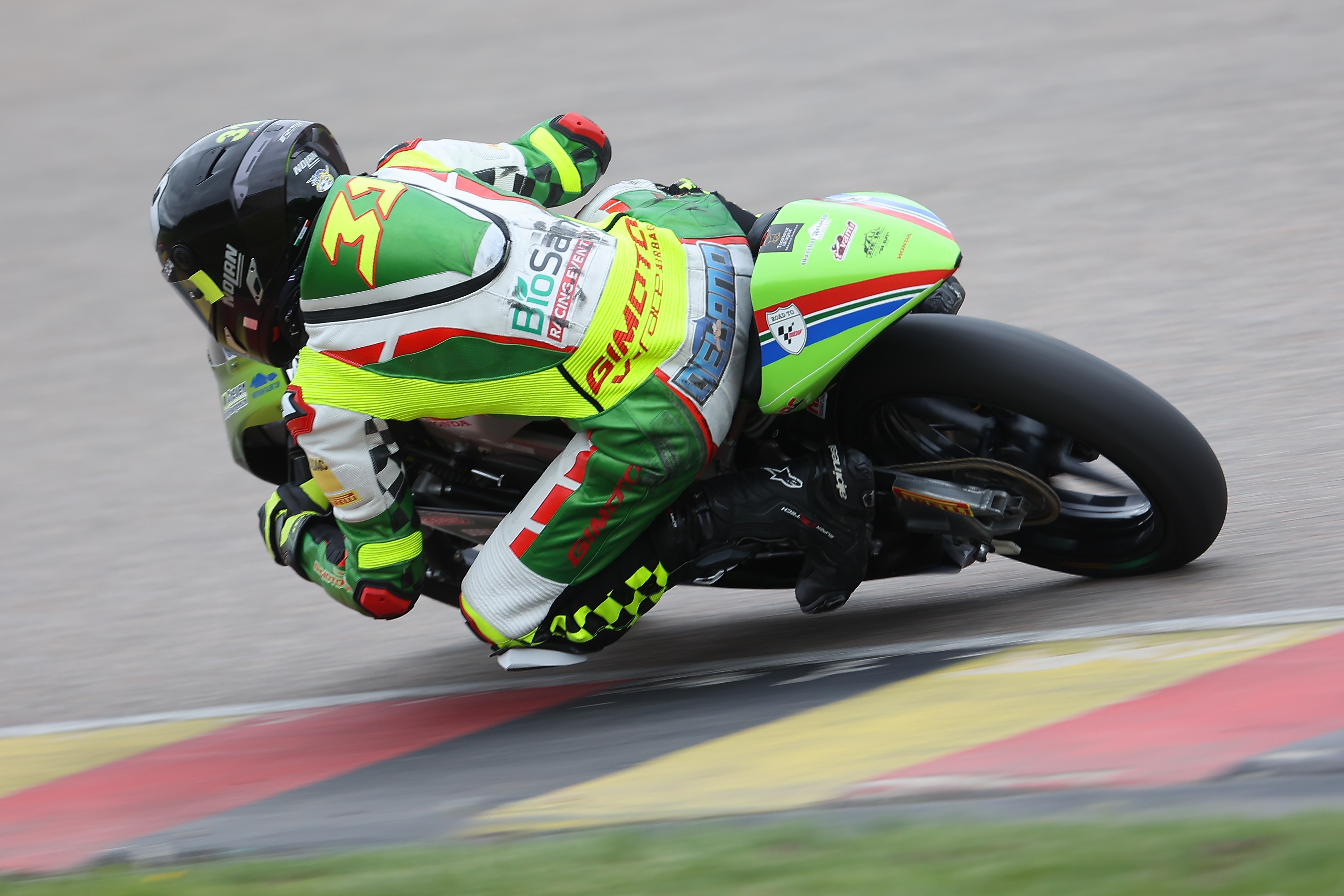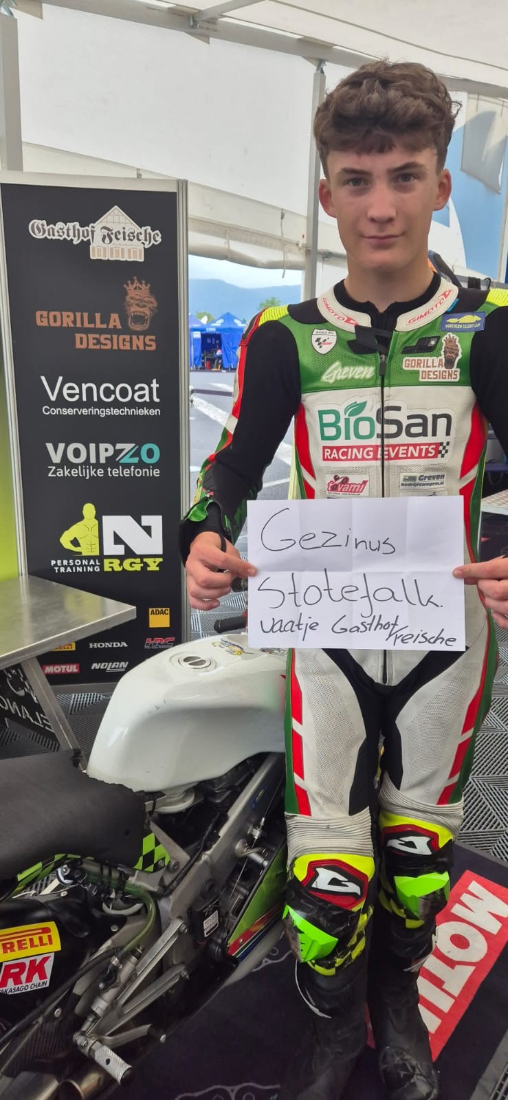 Start ging redelijk en had hij 2 plekken gewonnen maar al snel voelde Delano dat zijn neus vochtig werd…..toen zijn vizier van zijn helm rood van zijn eigen bloed begon te worden, kon hij niet anders dan de race afbreken.