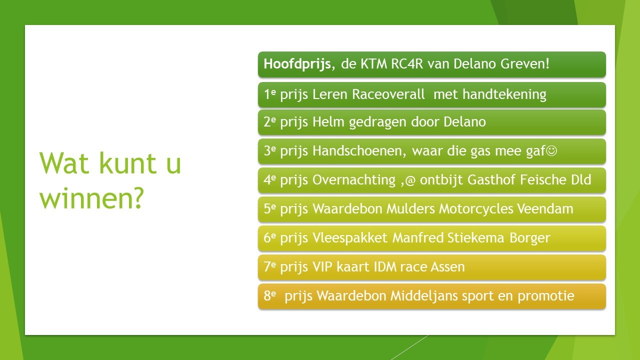 Voorwaarden zijn: 1 lot kost 100 euro, en moeten minimaal 50 loten zijn verkocht, de teamleden en bestuursleden van het raceteam zijn uitgesloten van deelname.