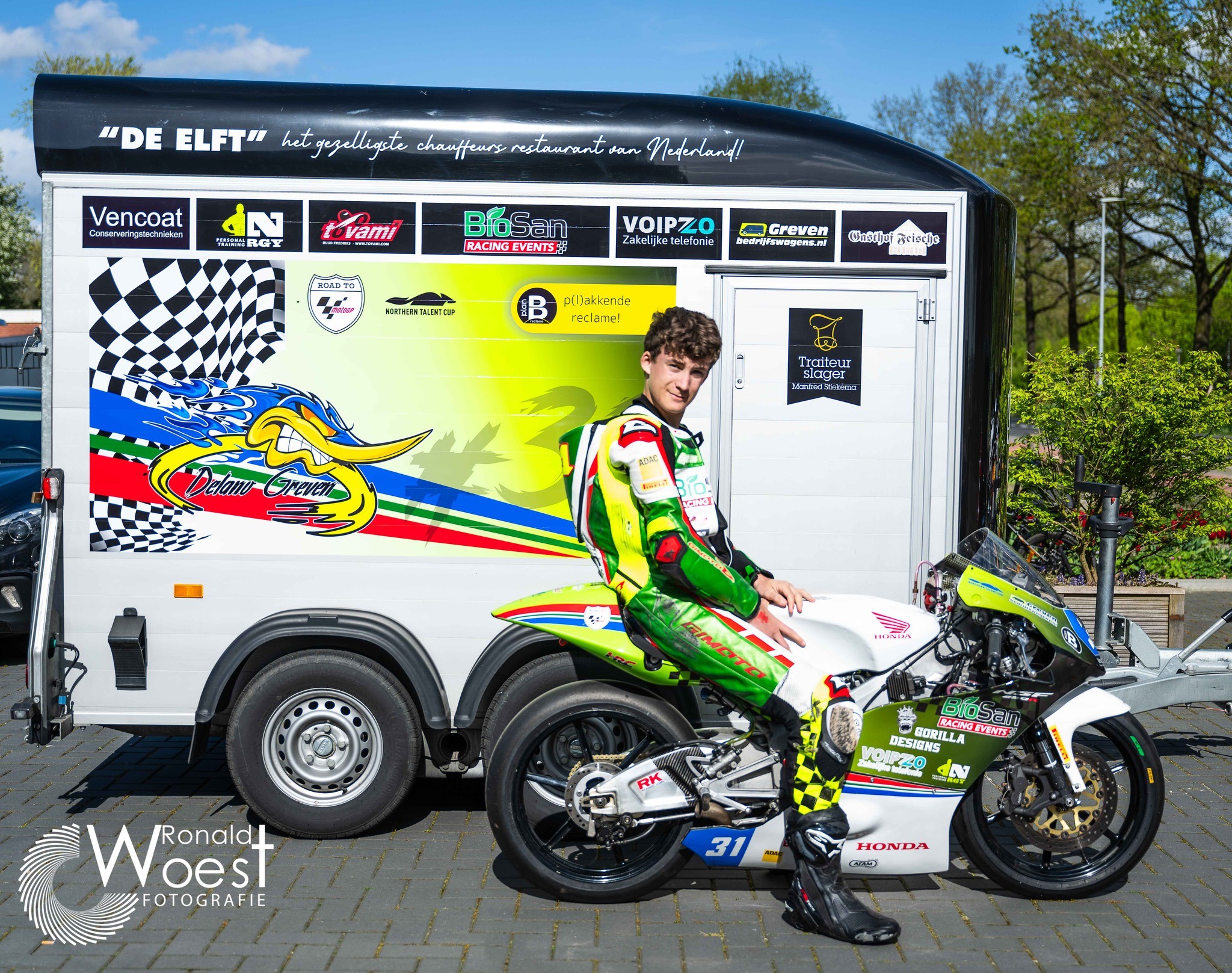 Om te beginnen… een eerlijk verhaal. Delano is blij met de wisseling van KTM naar Honda voor het nieuwe seizoen, maar de penningmeester van de Stichting totaal niet! Die is in 3 weken een heel stuk grijzer geworden. Een nieuwe Honda aanschaffen kost serieus veel geld (9600, ex btw) en ondanks dat er meerdere mensen binnen het team bijna dagelijks druk zijn met sponsoren werven, is het voor hen bijna onmogelijk om alles alleen rond te krijgen.